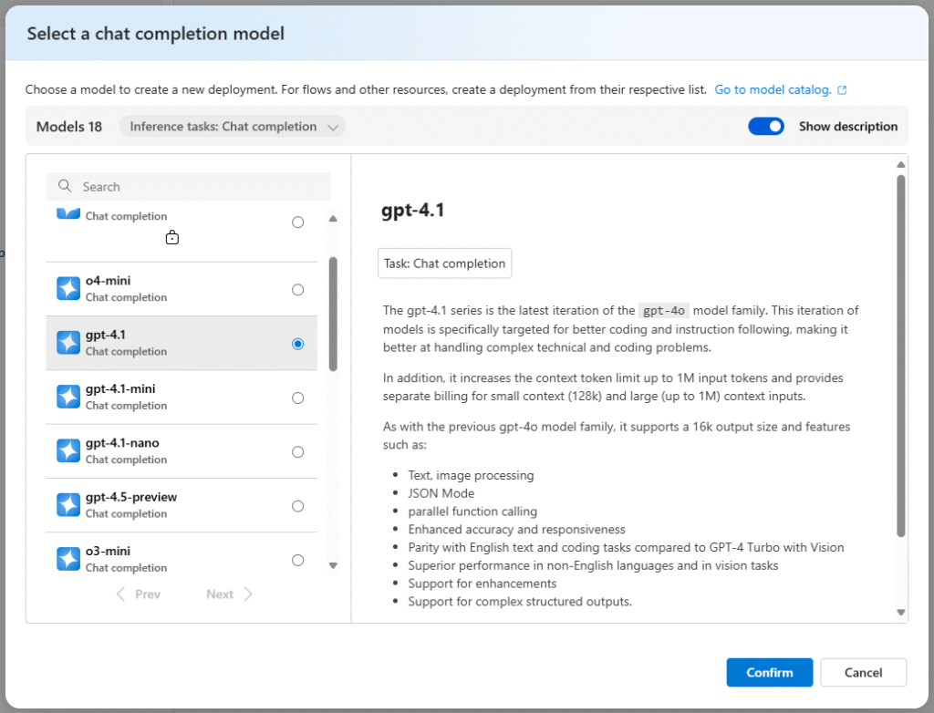 Select the relevant model. At time of writing, I am using gpt-4.1. Click Confirm
