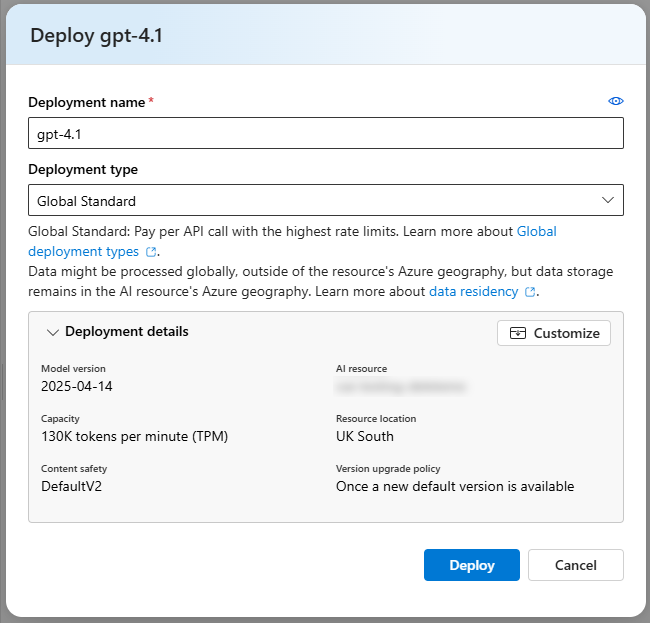 Click your newly deployed model. For this example, the model is gpt-4.1